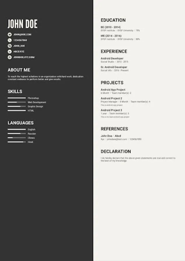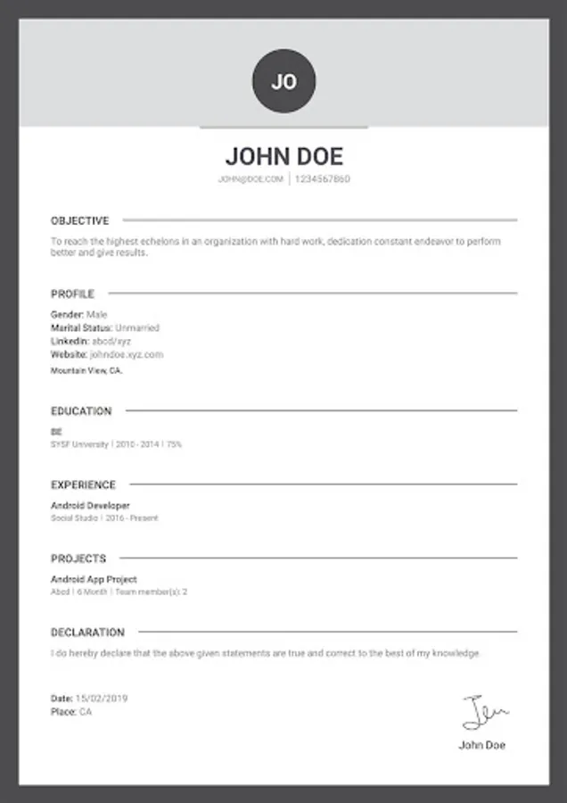 Create My Resume is a very easy and simple application to create your resume in a few minutes without any hassle or problems.