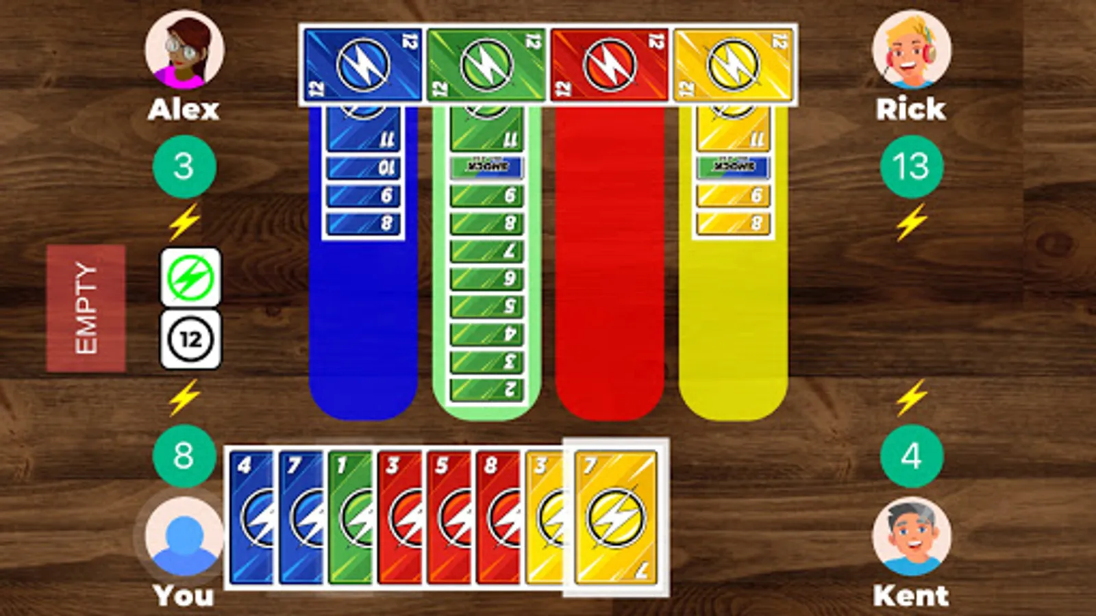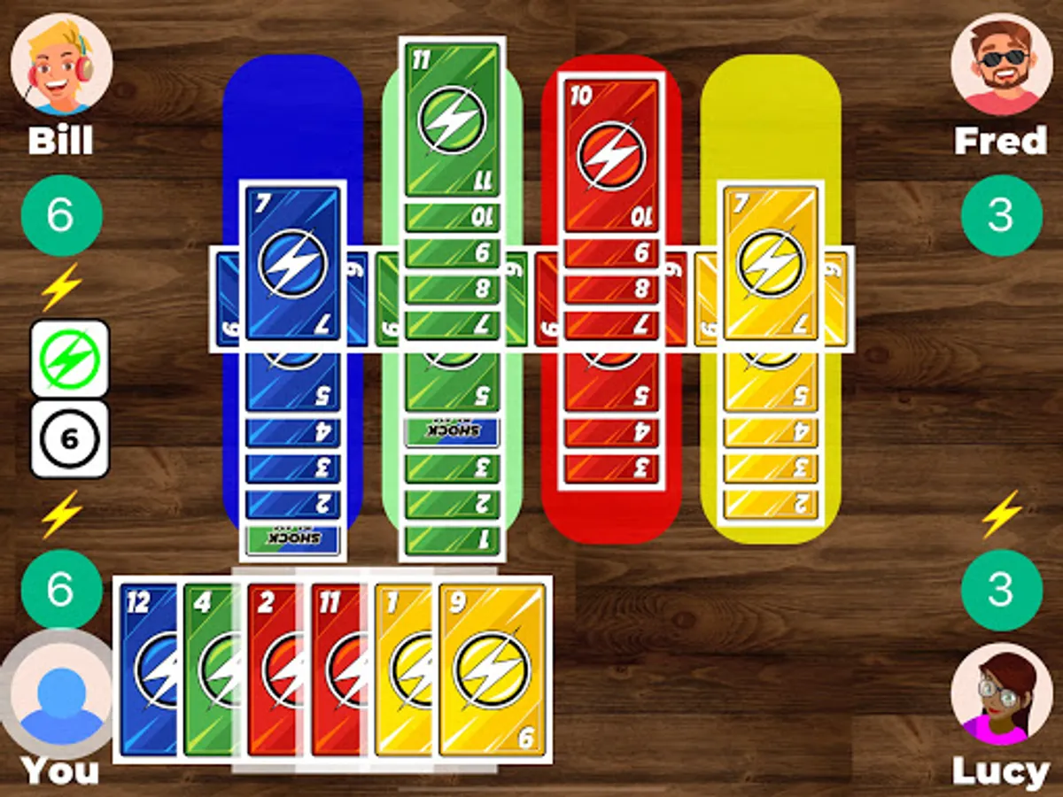 Play the next classic family card game. Build the power tower and play all your cards, but watch out for shock plays. Power switch your cards at the right time and totally change the course of the game. Be the player with the fewest points at the end to win!