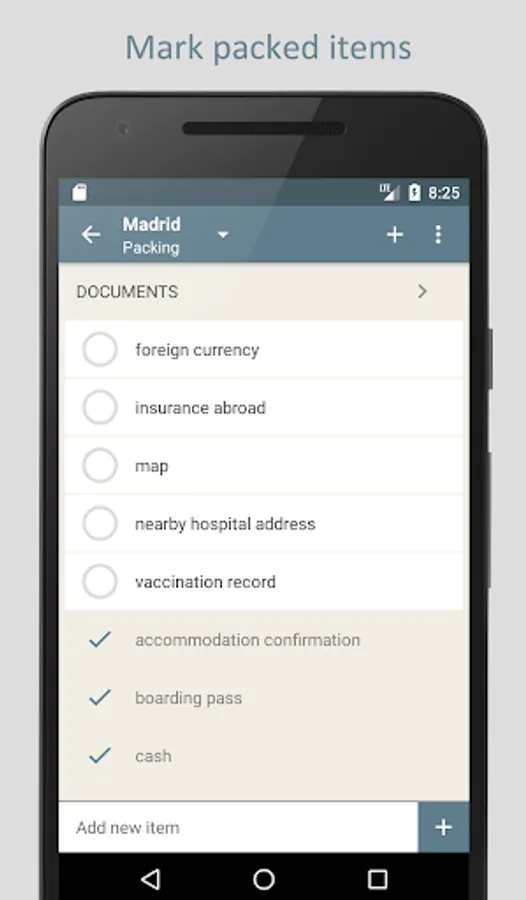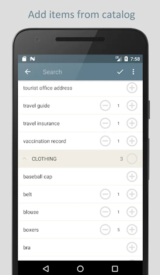 • Built-in catalog of the most commonly packed items in the luggage (about 400 items)