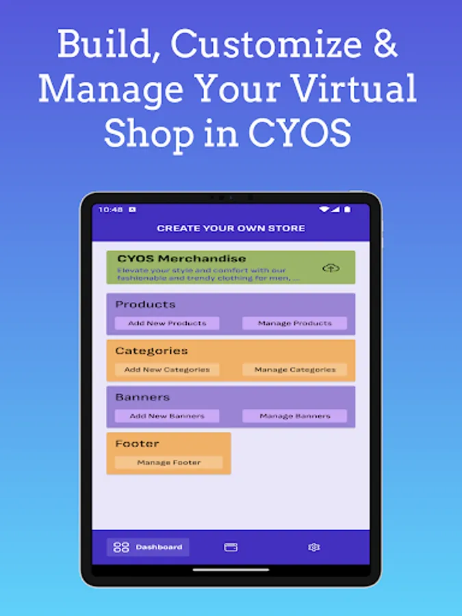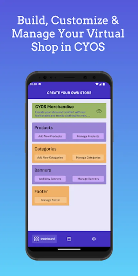 "CYOS (Create Your Online Store) - Build Your Dream Web Store! Create, Customize, and Manage Your Own Online Shop with Ease. From Choosing Products to Customizing Your Storefront, Attracting Customers, and Tracking Sales, CYOS Gives You Full Control Over Your Virtual Retail Business. Start Your Entrepreneurial Journey Today!"