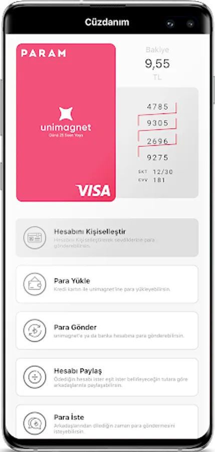 The wallet of uniKuni members is unimagnet Card, it is your prepaid Visa card with lots of opportunities, lots of extras, lots of advantages and lots of discounts. With your unimagnet Card; You upload money, send money, share the account, and request money from others. You can either use only a virtual card or carry your physical card in your wallet.