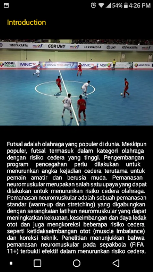 FIVE is a neuromuscular warm-up designed for futsal. FIVE stands for Futsal Injury Prevention and Enhance Performance. FIVE was compiled and validated by several experts such as: Indonesian Futsal National Team Coach, Asian Football Federation (AFC) licensed Instructor Coach, Sports Medicine Specialist, Sports Science Lecturer, and Strength & Conditioning Coach. FIVE has also been recognized by the Indonesian Futsal Association which is under PSSI (Indonesian Football Association). FIVE refers to the number 5, where that number is the number of 1 team playing futsal. As the name implies, FIVE consists of 5 components of neuromuscular warming consisting of: