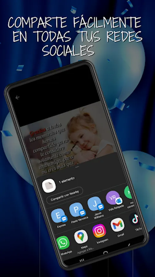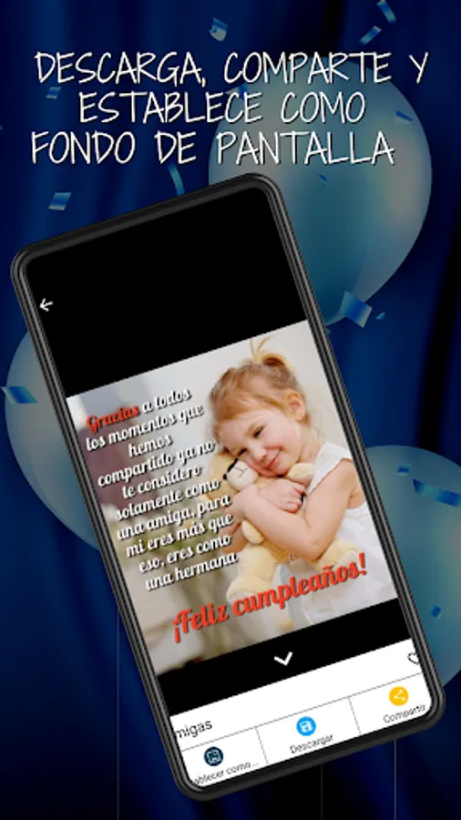 It is a fun way to share cute Happy Birthday phrases, with that message that you want to send through your social networks in a fun and very simple way, with just a few movements you can send many images and share images with fun phrases.