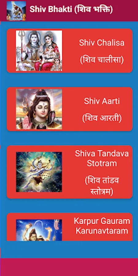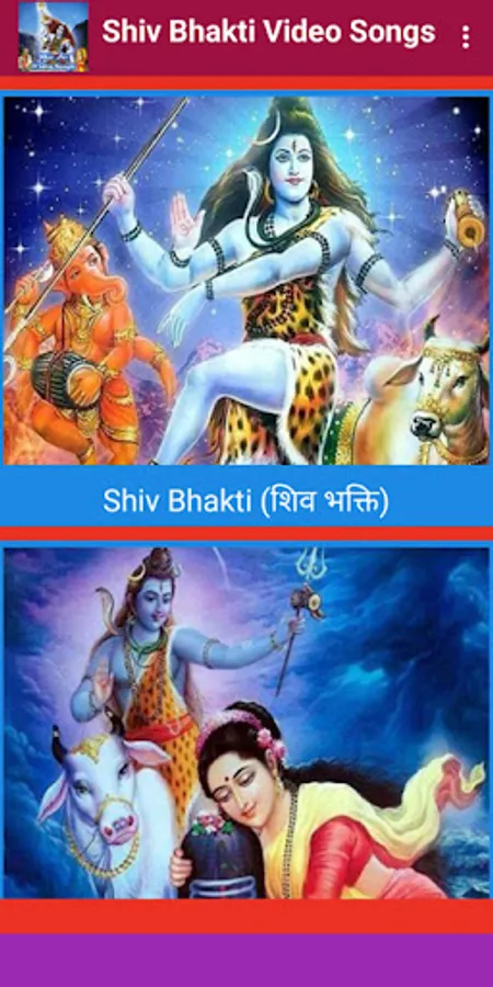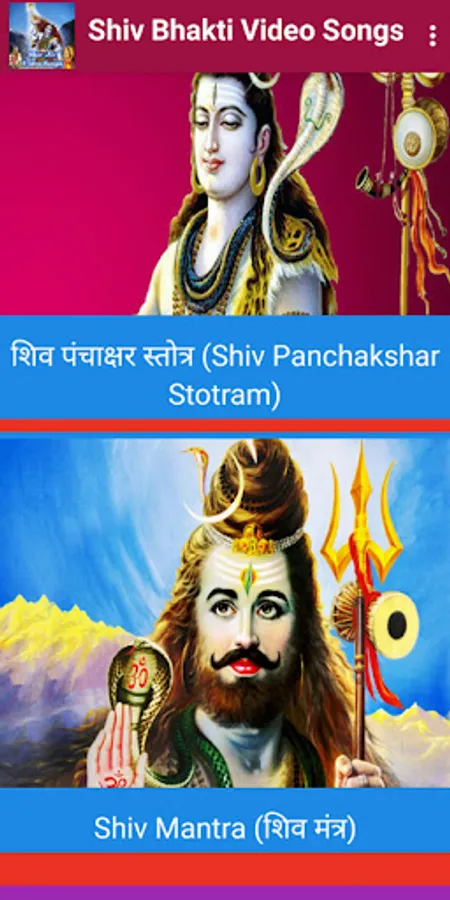 Shiv Chalisa, Shiv Aarti, MahaMrityunjay Mantra, Shiv Mantra, Shiv Tandav Stotram, Shiv Panchakshar Stotram, Om Namah Shivay Dhun videos and lyrics (hindi & english) etc and very huge collections of God Shiva Bhajan videos.