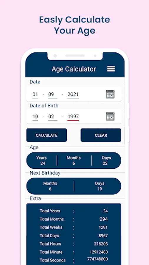Now you can also measure your actual age in years, months, days, weeks, hours, minutes and seconds in Age Calculator.