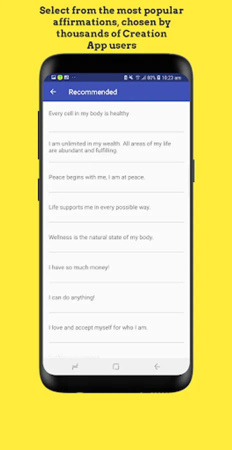 Creation is a simple way to improve your life using your own voiced affirmations & NLP. Choose from 200+ affirmations in catagories like relationships, money, mental & physical health, happiness or make your own affirmations. Record your own voice affirmations & listen in a loop as you sleep, in the background during your day or even while you watch netflix.