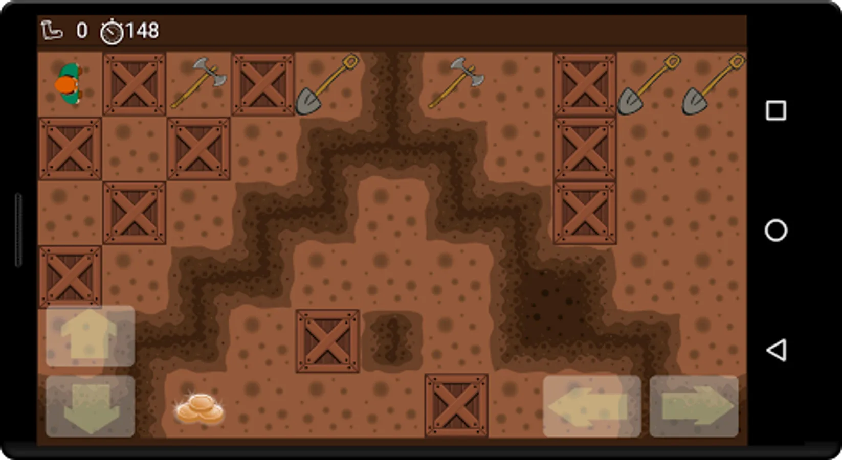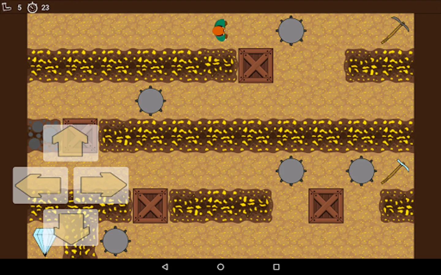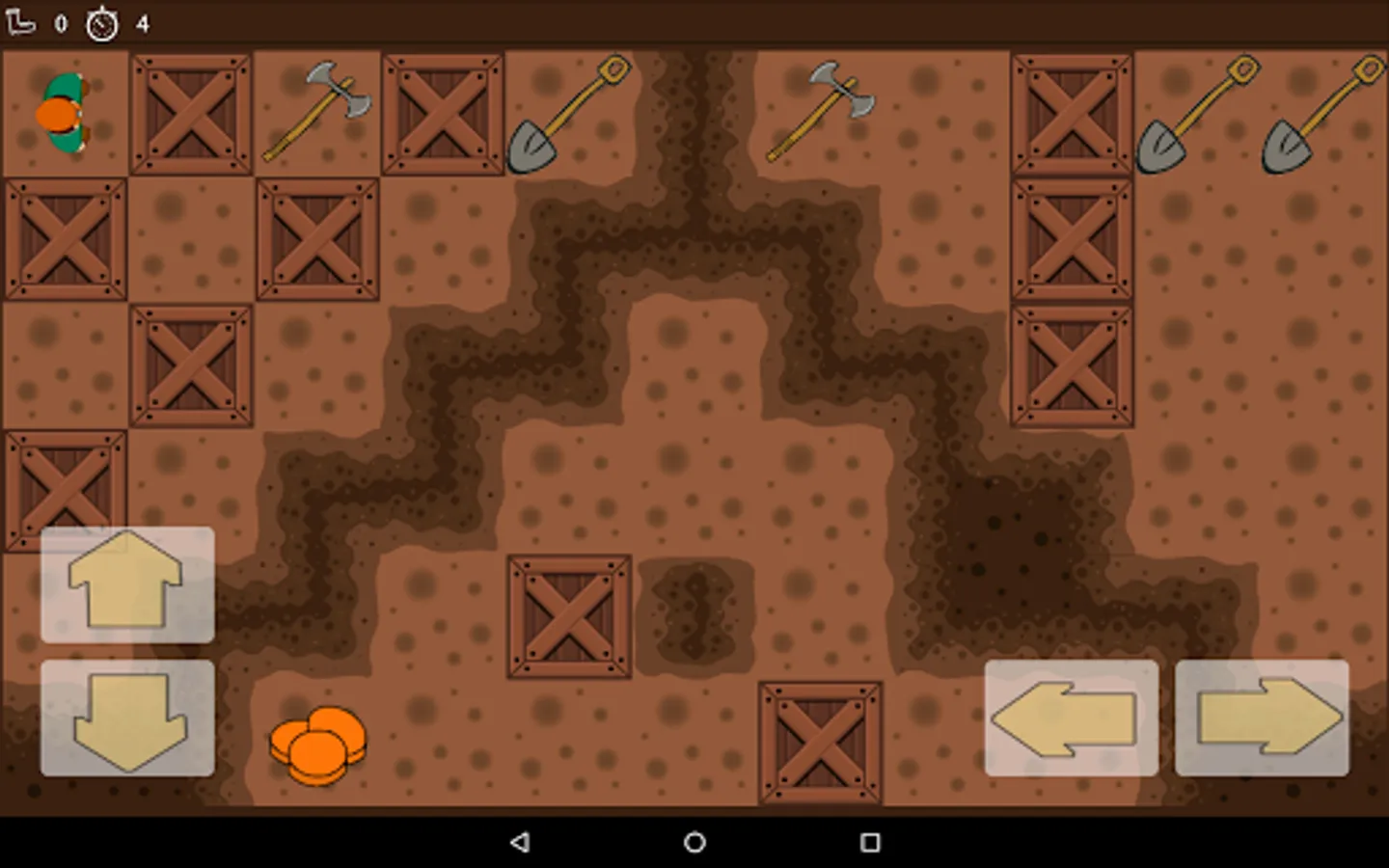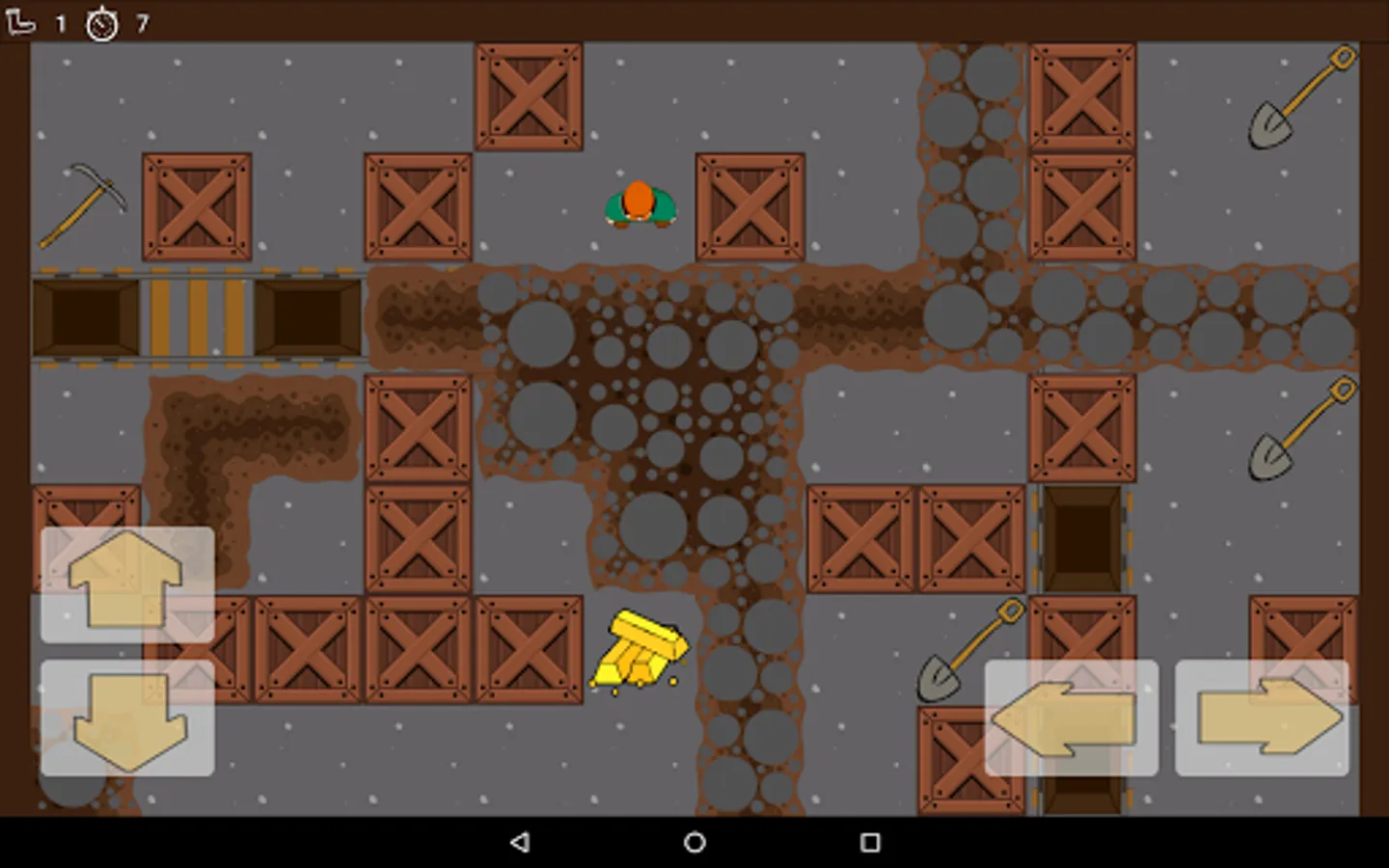 In order to find the treasures of the mines, you have to dig deeper into the mines with your shovel, destroy boxes with axes and make your way through all kinds of obstacles and traps. Try to complete the levels as fast as you can and using as little steps as possible. The game has elements from sokoban games, also in this game you will need to push boxes into the right direction.