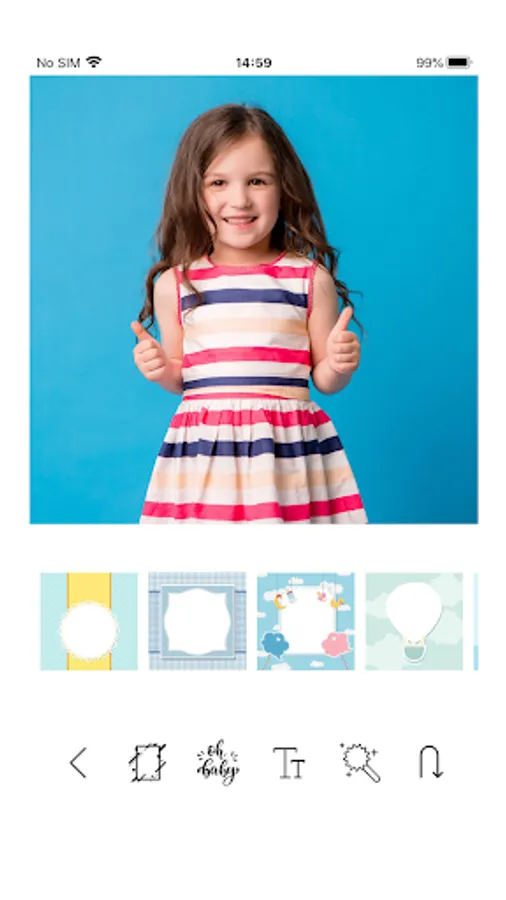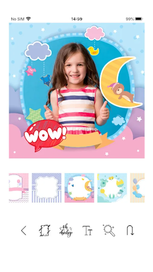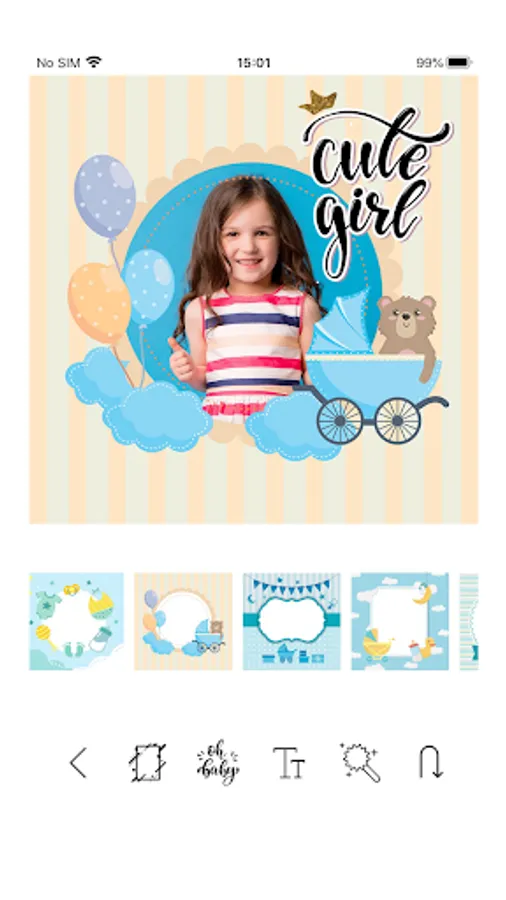 - Use our collection of over 50+ stickers and artworks to enhance your baby’s pictures