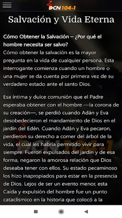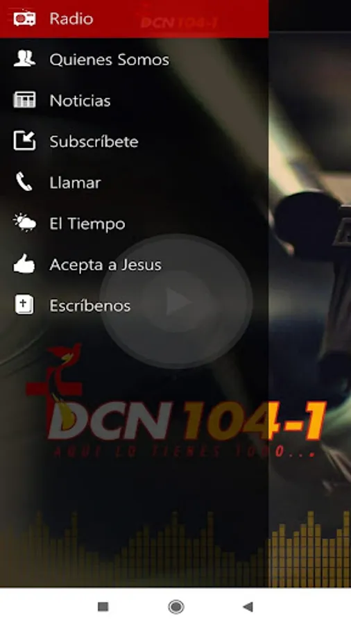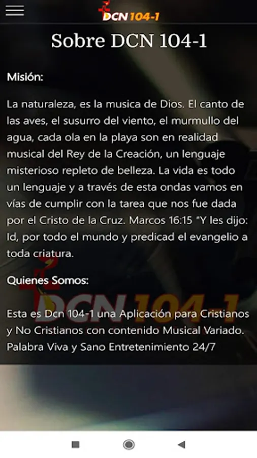 Esta es Dcn 104-1 una Aplicación para Cristianos y No Cristianos con contenido Musical Variado. Palabra Viva y Sano Entretenimiento 24/7.