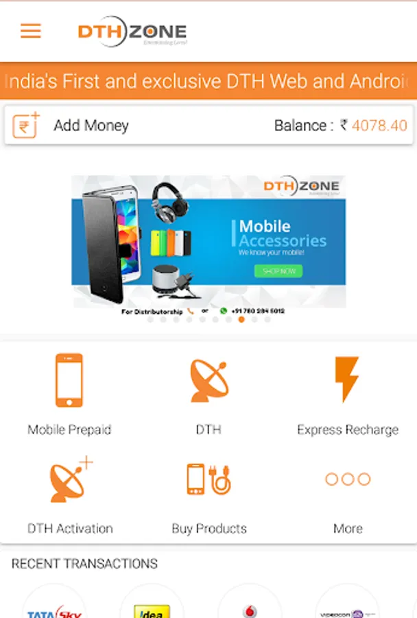 DTHZONE is India’s fastest growing wallet based recharge company which is working towards providing better services in the industries. We have an experience of couple of years in DTH industries.
