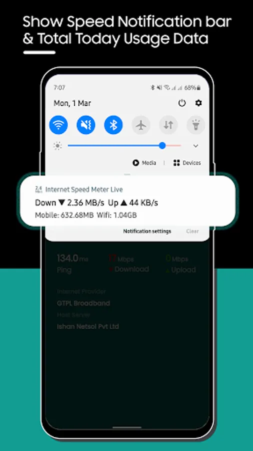 - Speed Mobile Internet and WiFi And Use Of The Current Day As Well As Internet Speed Alerts In The Notification Bar (Notification)