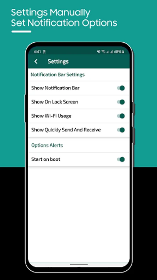 - Show Status bar Mobile and WI-Fi internet Speed.