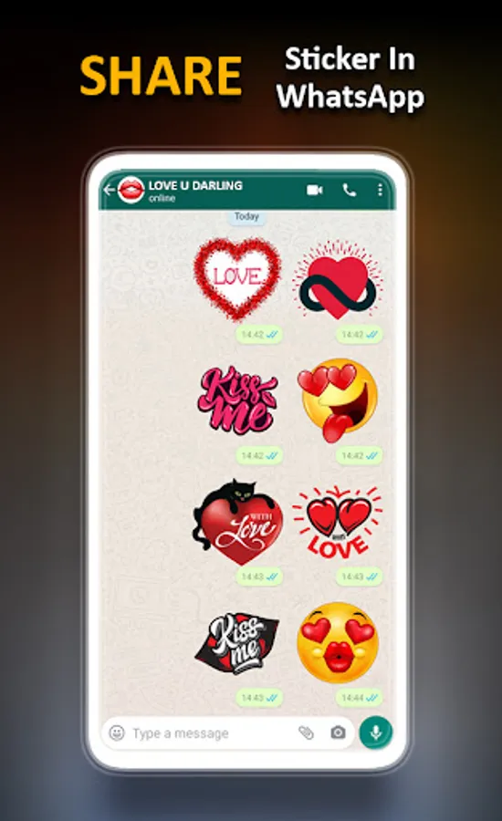 You can share Love Sticker to different social networks like WhatsApp Messenger, Facebook Messenger, Twitter, Telegram, Instagram and many more.