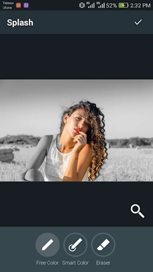 Using Splash effect you can apply colored effect on your photo by finger mean a specific part of photo can be revealed to show original photo colors by desaturating or black and white all photo.