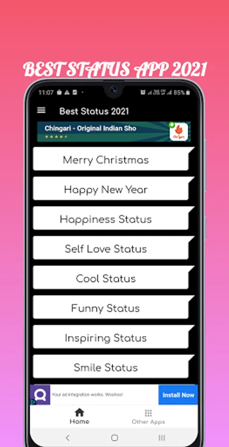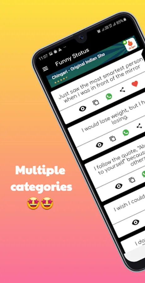 This app brings you the best status collection in English. Show your love with this status. Collection of best status and quotes in English can be used as a WhatsApp status, Facebook status, Instagram captions, or any other social media. Setting good statuses gets increased likes on your wall posts. If you are looking for a nice, crazy, cool, funny, or amazing status collection, your search ends in this status and quotes app.