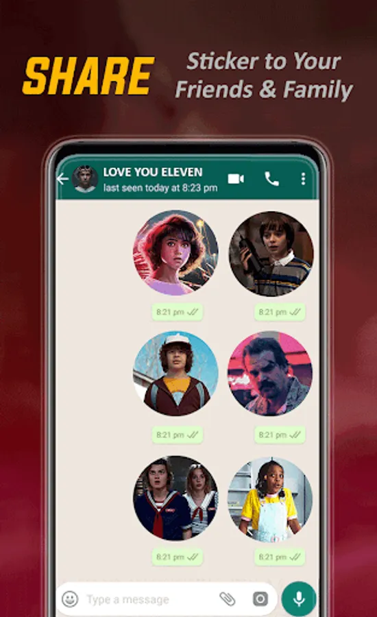 For sharing with your Friend and Family on Whatsapp, we provide a huge collection of Stranger Things Stickers and emojis, from Eleven stickers to Whatsapp stickers of Things Stickers.