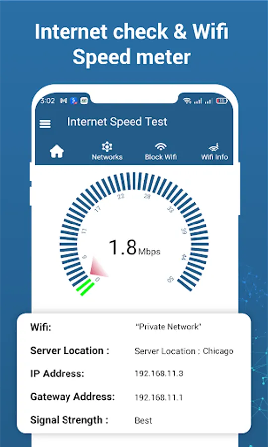 Wifi Info - Internet SpeedTest offer you to check speed or find accurate WIFI speed history anytime. WIFI speed meter is also mbps checker to check your mobile wifi speed in mbps and internet connection history. Test your internet connection with wide range of internet mobile networks. Best speed tester app with download, ping , upload speed test or internet connection with speed testing.
