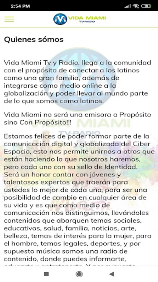 We hope you join us and become part of the great family Vida Miami TV and Radio, the meeting point in the global space!
