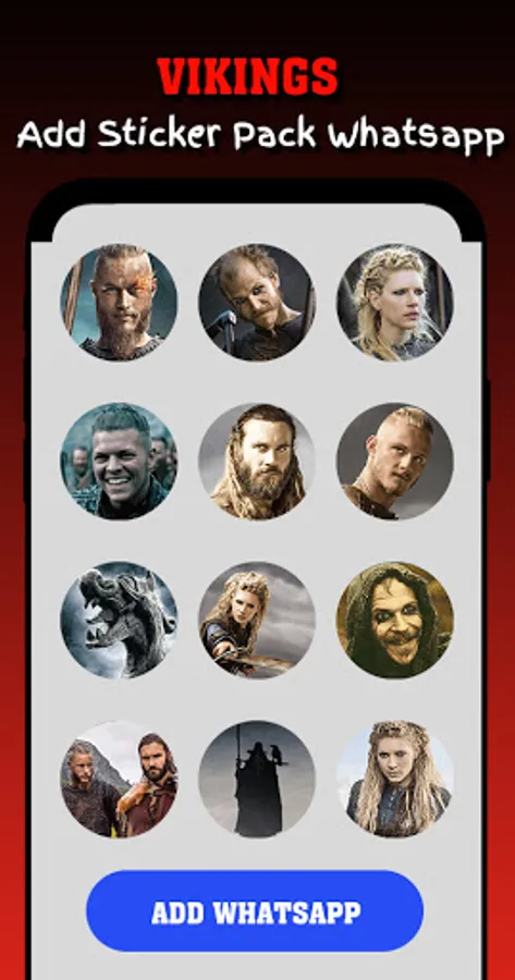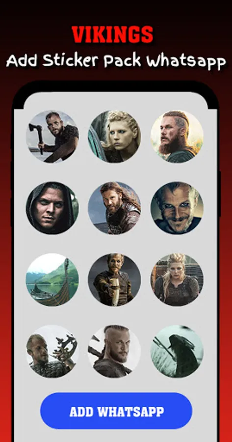 Vikings provide almost All Charector Sticker Pack and More than will be add more in continuous update. There Also some Sticker Ragnar Lothbrok, Floki, Lagertha, Rollo, Boneless so many Other Character in Series Vikings like Bjorn Lothbrok, Athelstan, Siggy, Torvi, Porunn Etc.