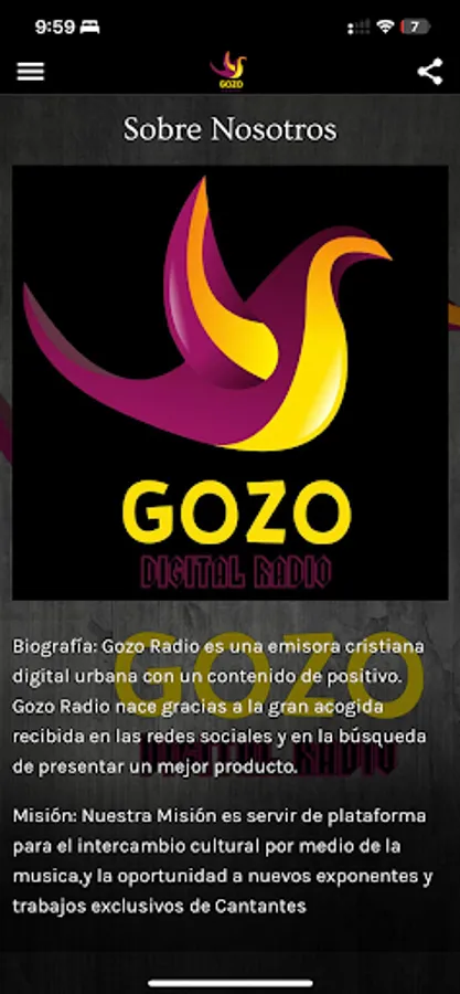 Gozo Radio es una emisora cristiana digital urbana con un contenido de positivo. Gozo Radio nace gracias a la gran acogida recibida en las redes sociales y en la búsqueda de presentar un mejor producto.