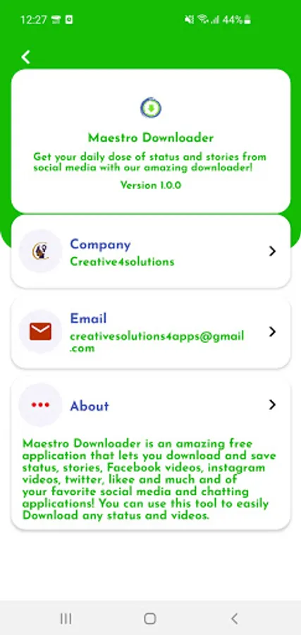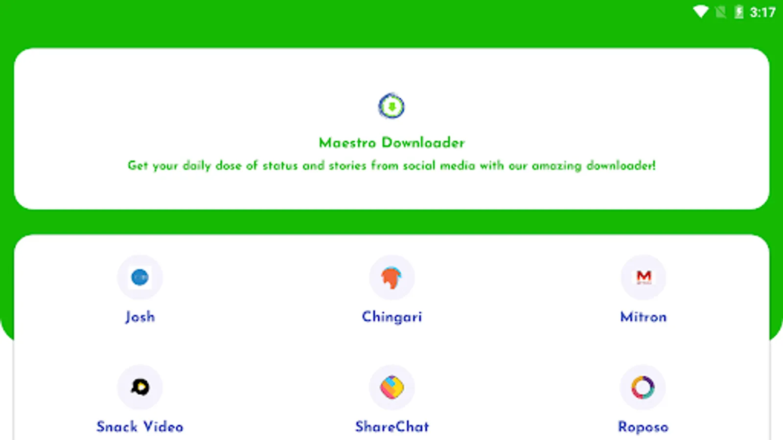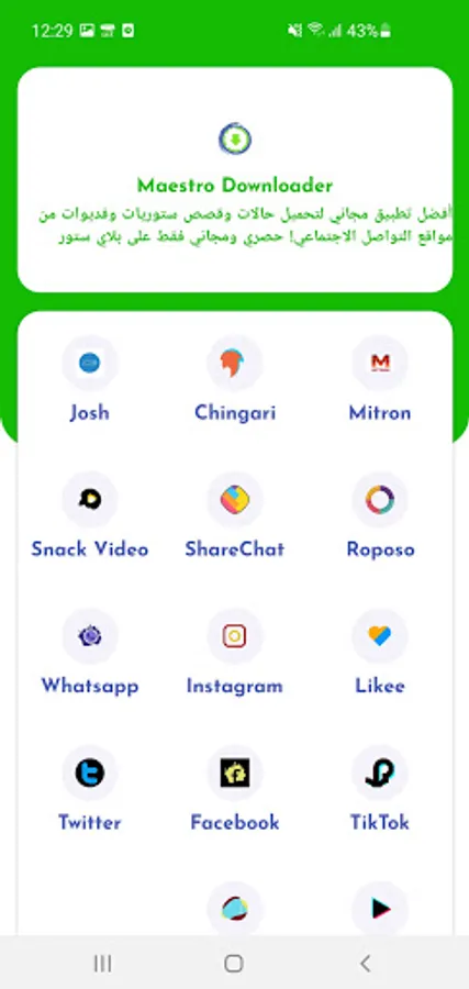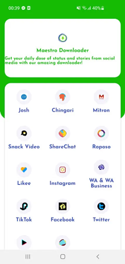 NOTE : Maestro downloader is NOT affiliated or endorsed by Facebook, Instagram, WhatsApp, Tiktok, Likee, Twitter and other social media platforms that are included in this application.