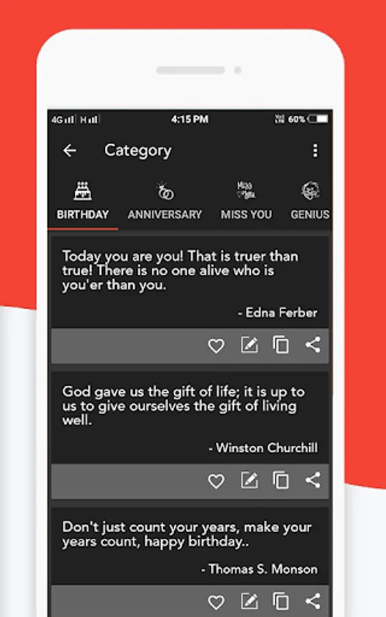- Contain more then 15 different card category like birthday, anniversary, festival, love, friendship etc.