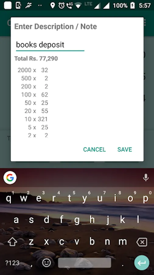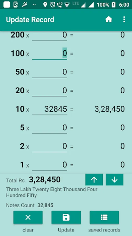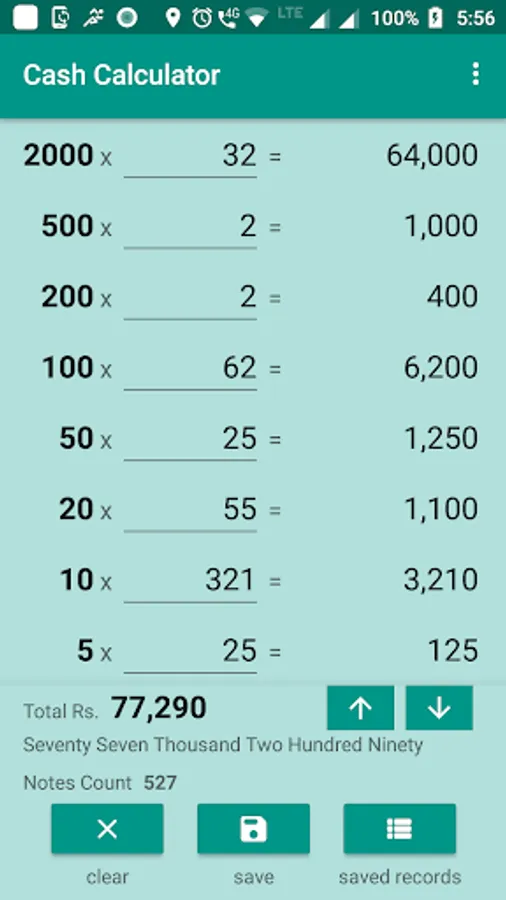 Cash calculator / counter counts the cash in Indian denominations .