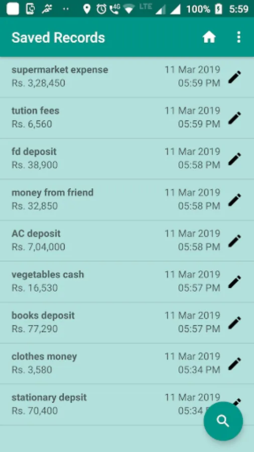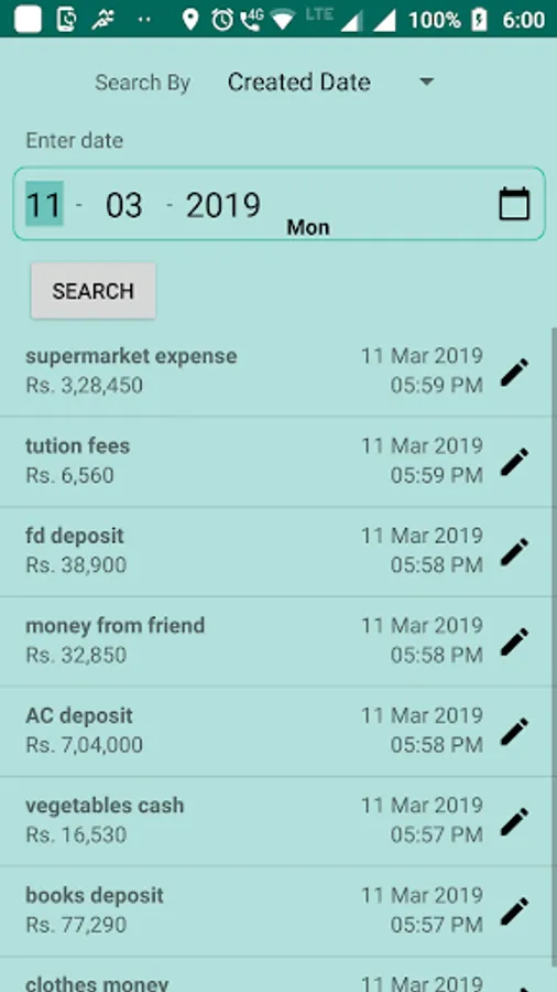 Saved cash calculations can also be searched by saved date or the description.
