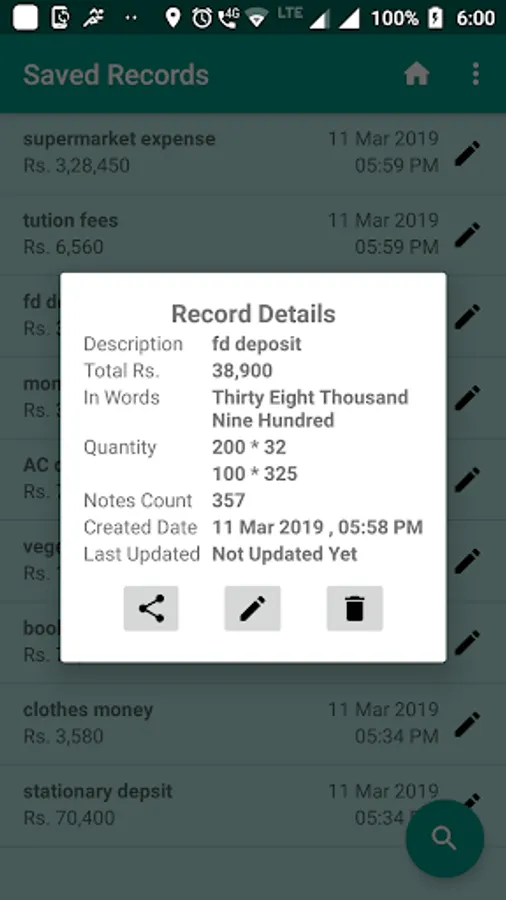 Also shows the total number of notes and cash amount in words.