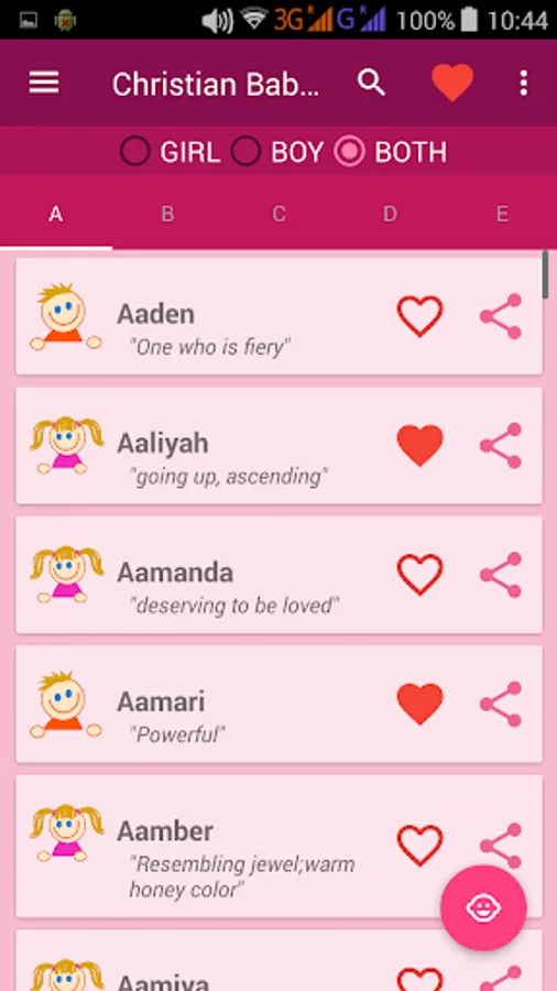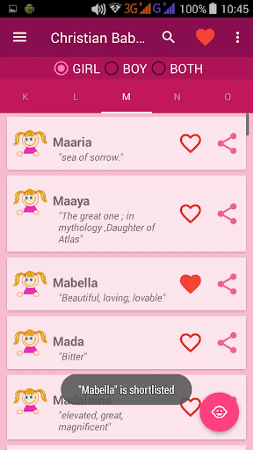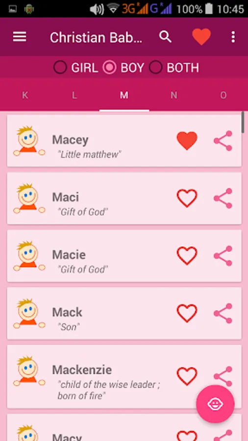 App has collection of beautiful and pleasant Christian,biblical ,hebrew origin baby boy and baby girl names along with their meanings.