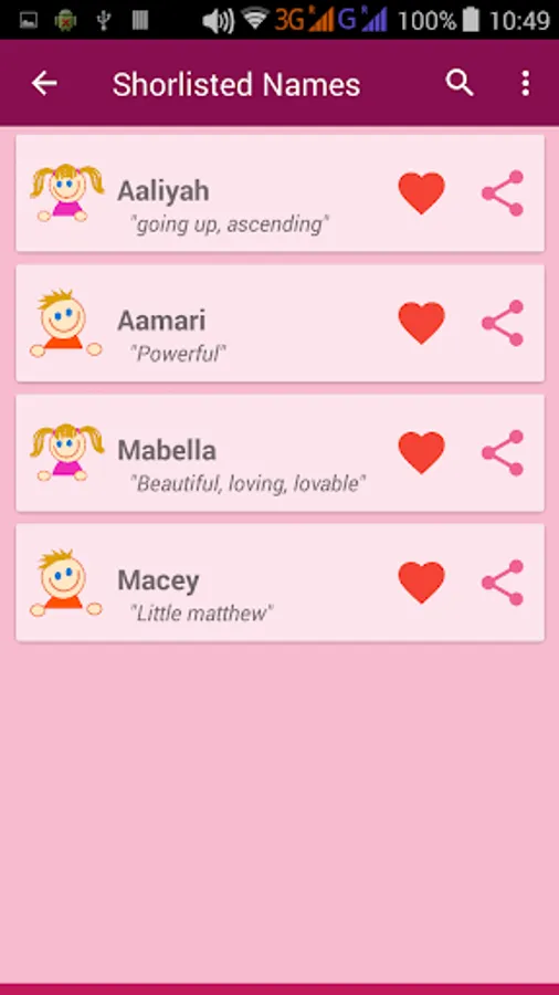 - Baby Names can be shared with friends or family members or shortlisted to decide later.