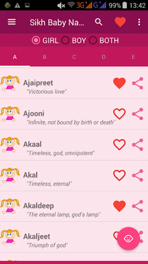 App has collection of beautiful and pleasant Sikh /Punjabi baby boy and baby girl names along with their meanings.