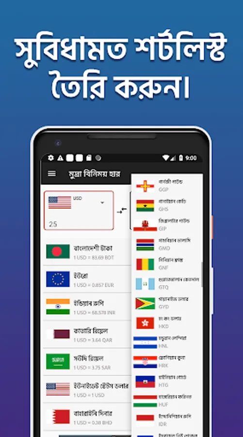 These above are the ones that Bengali people use most often; but the app features all the currencies in the world. So if you need to know the rate of money from anywhere offline, download and keep the app on your phone.