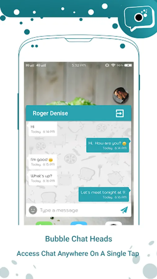 ** Disclaimer ** : Bubble Chat Heads is NOT an official app from any social massaging app. Bubble Chat Heads is NOT affiliated in any way to any social massaging app.