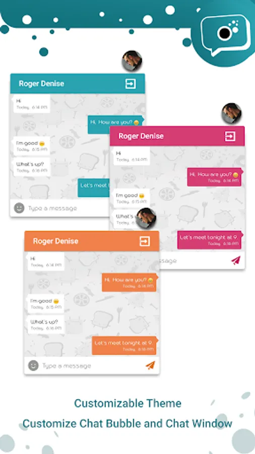 It comes with many chat heads customizations like, chat bubble customization, chat window customization. Also you can change the theme of chat window and make it looks amazing. This Bubble Chat Heads app lets you change the chat window background photos of any chat conversation. A conversation is incomplete without emojis so this Bubble Chat Heads app has it all togather for you.