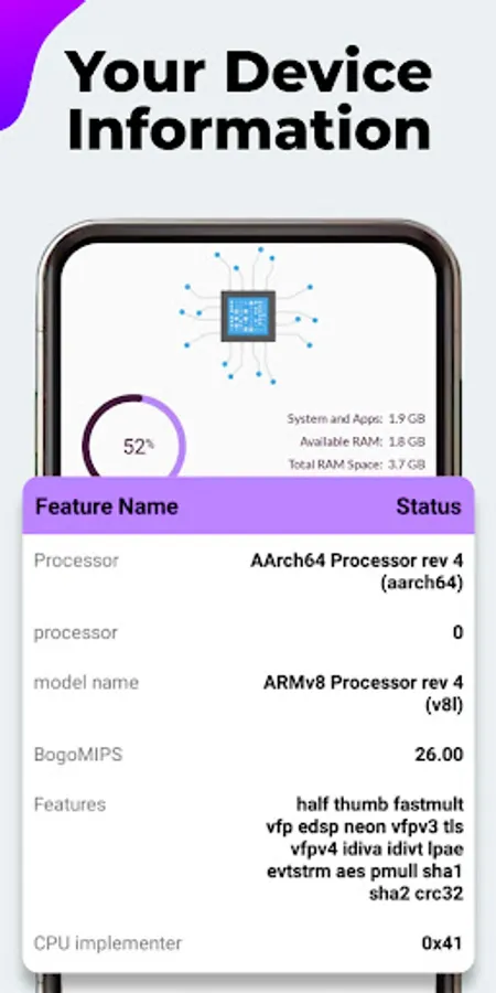 RecoverPix brings you all the important information about your phone. You can easily check mobile phone information, device brand and model, screen resolution, RAM, and storage capacity. Battery level, status, temperature, and capacity.