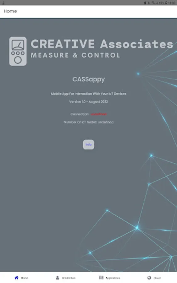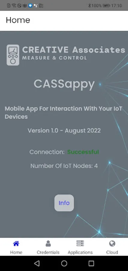 This APP allows the customers of CREATIVE Associates to interact with their IoT devices/solution. Currently you can look at sensor data like Air Quality (PM10/2.5), temperature, humidity, CO2, water levels/volumes... and remotely control connected devices like for example lights, pumps, gates, doors, ventilation, heating, irrigation and more. We will gradually add more functionality for specific implementations like our RFID based student follow-up solution. In order to use this APP you will need a registered user account on our cloud application server which is only possible when you have an active contract with us.