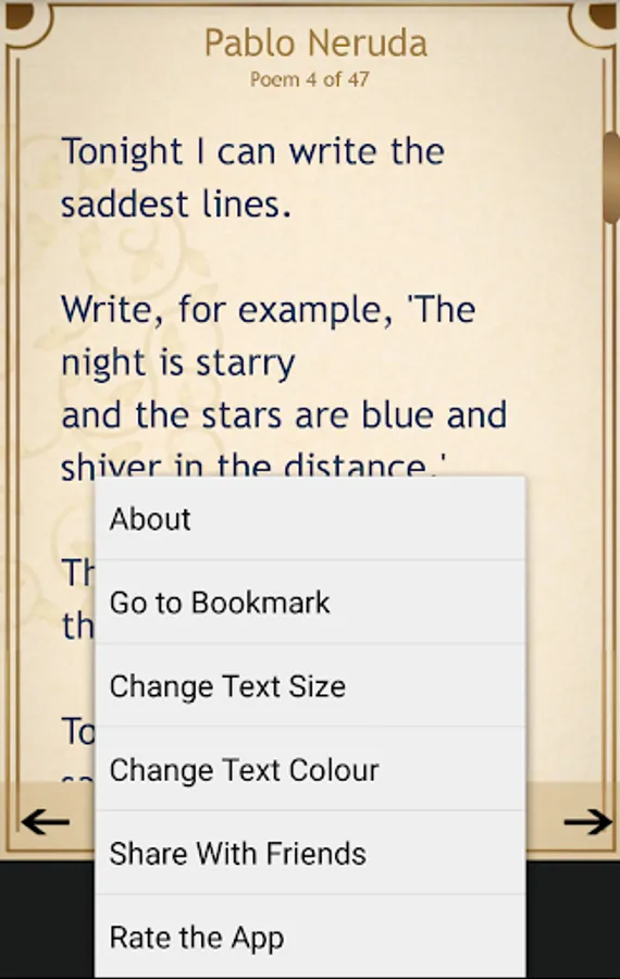 The English Poems app also boasts a beautiful user-friendly interface, making it a pleasure to use. And, for those who love to share their favorite poems with friends and family, the app has a built-in sharing feature, allowing you to easily share poems via social media or messaging apps.