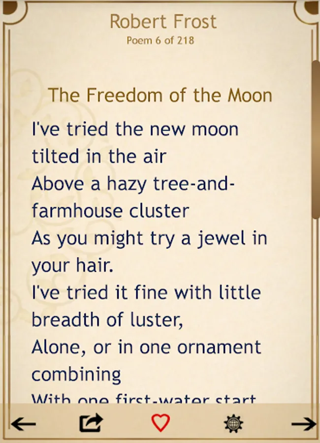 The app offers a user-friendly interface, allowing you to easily browse and discover new poems. You can search for poems by poet, title, or keyword, and even bookmark your favorite poems for easy access later.
