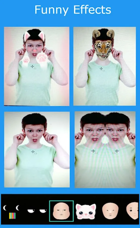 -- Funny effects of face like tiger, cat, fat face etc.