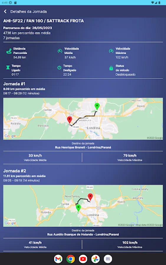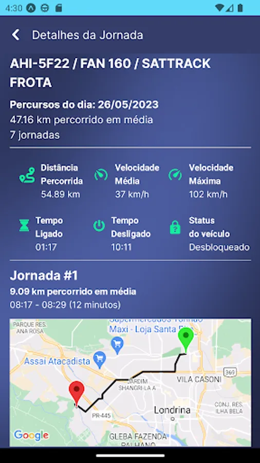 Get access to your vehicle's daily journey information, being able to control how long each journey took, the distance traveled from one location to another and the average speed reached on the day.