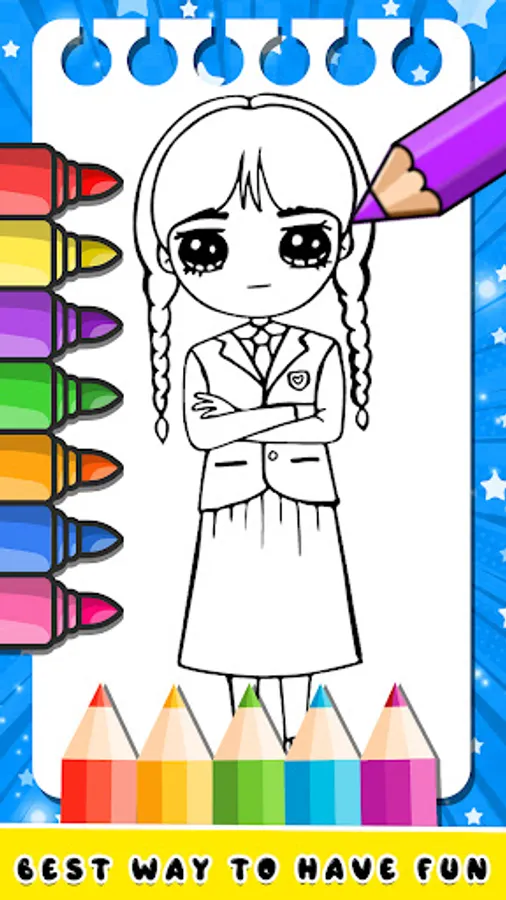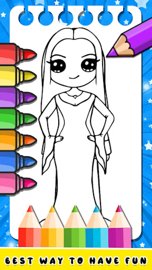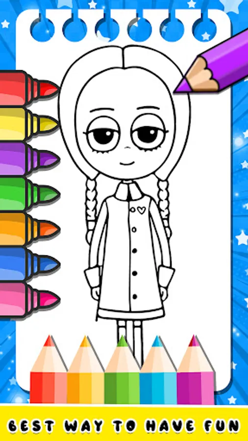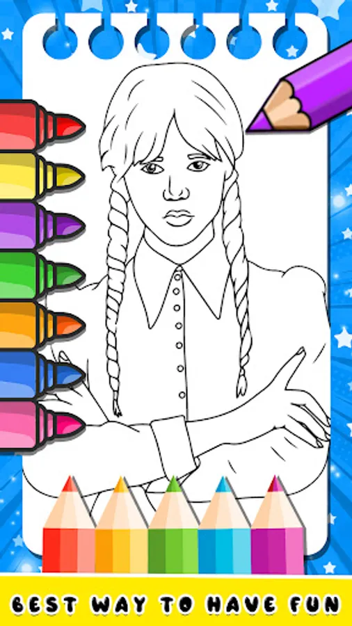 Wednesday Addams Coloring Book 🎨 is a fun and creative way to explore the family of Wednesday Addams. With a variety of coloring pages of Addams Wednesday featuring your favorite Wednesday Addams characters and scenes, this app offers hours of entertainment boy and girl. The user-friendly interface and wide range of colors, make it easy for anyone to start coloring Wednesday.