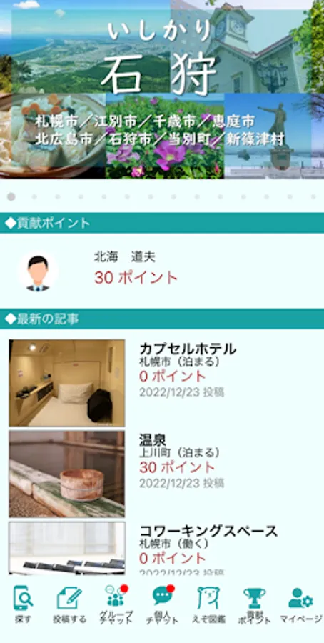 You can easily disseminate Hokkaido recommendations (eating, staying, working) within the community along with your impressions of using them. Also, if the points given by members who liked the article accumulate, the contribution ranking of information dissemination will rise.