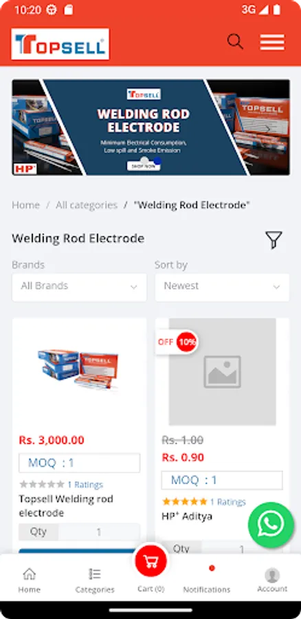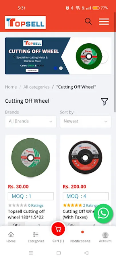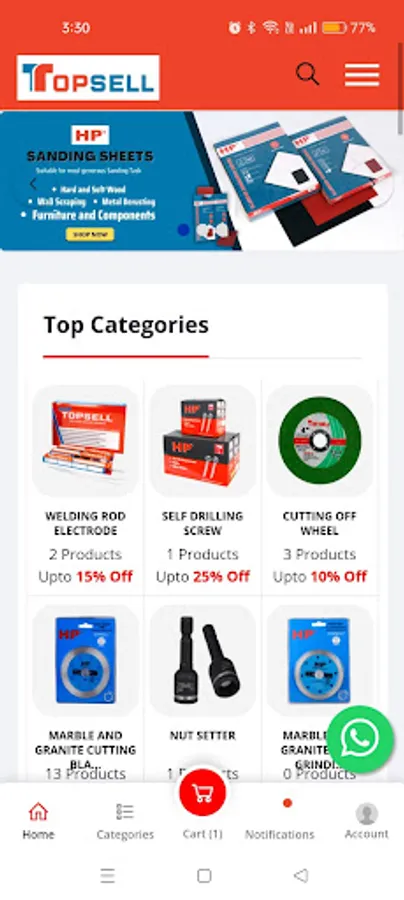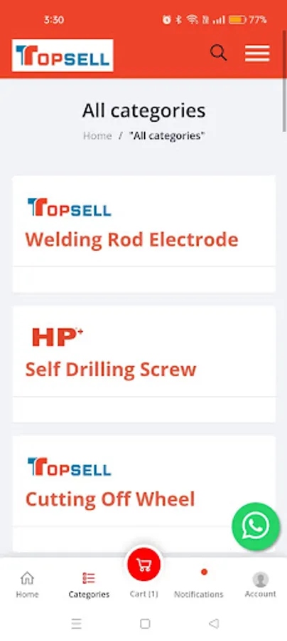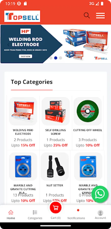 Topsell App is provide below product like Welding Rod Electrode, Self Drilling Screw, Cutting Off Wheel, Marble and Granite Cutting Blade.