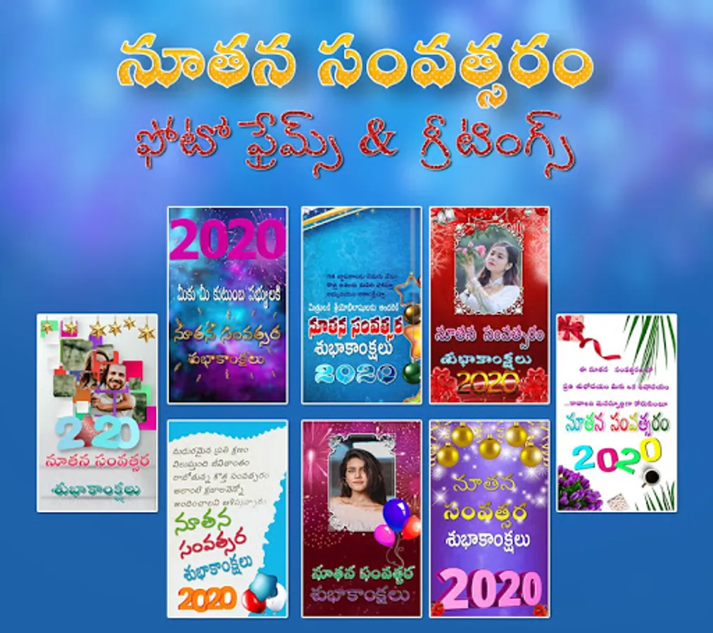 Telugu new year greetings 2020 is the best app to send the new year greetings to your loved people.this app brings the good collection of greetings.how grateful you are if u send the picture of your friend,relative...in new year card.it could be surprising wishing right. show your love on others by wishing them with this new year frames and greetings.