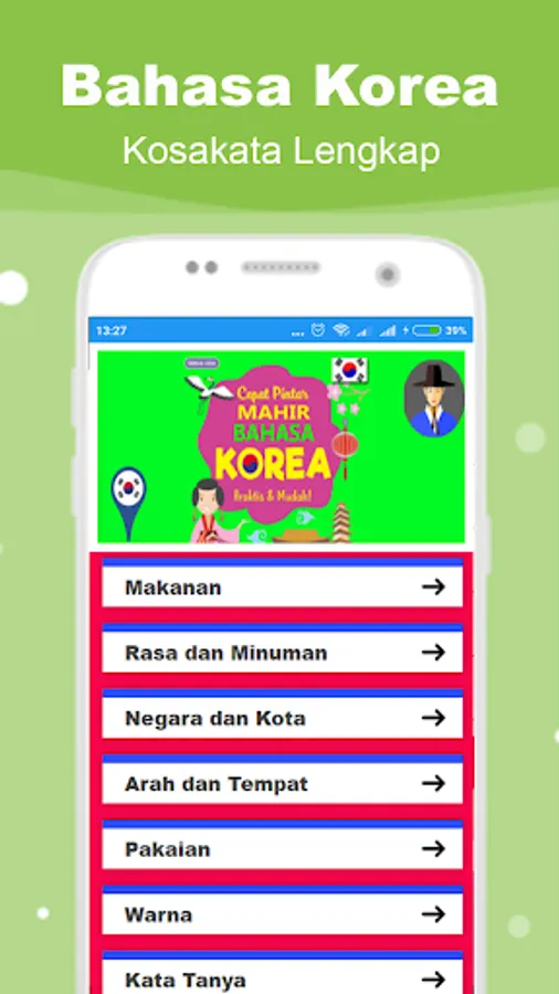 For those of you who want to talk to Caucasians in tourist attractions such as Jogja, Bali, Lombok, etc., this practical everyday Korean application is perfect for you. In it has been presented in detail and in detail a lot of Korean sentences that are commonly used by Caucasians or foreign tourists when they travel to tourist attractions in Indonesia.