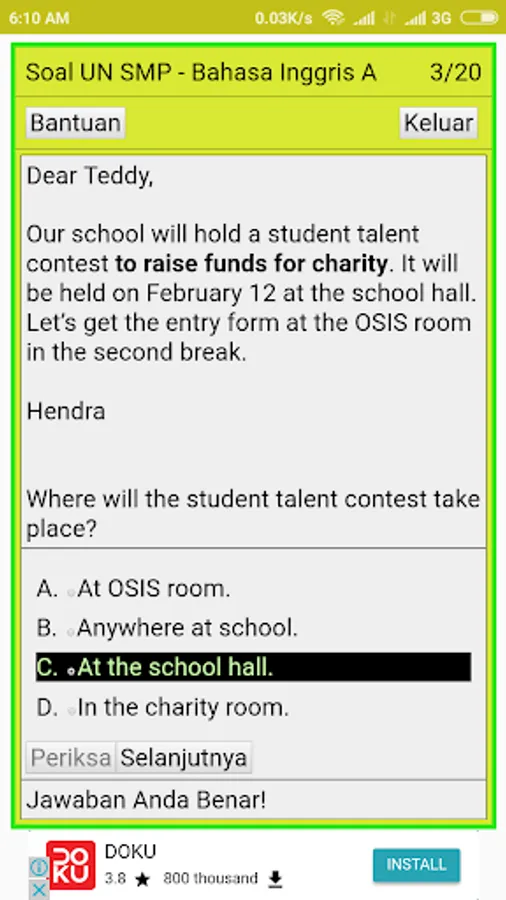The question of the National Examination Program for the MTS Middle School 2020 (UNBK) - This is complete also with answers and the results of the assessment of the questions that you have answered.