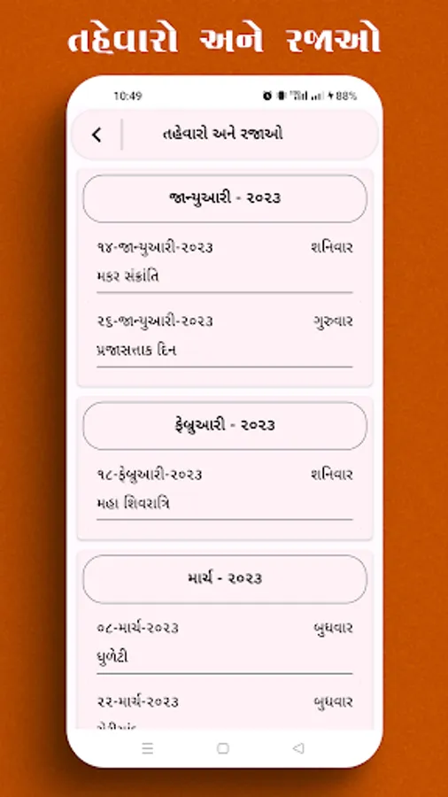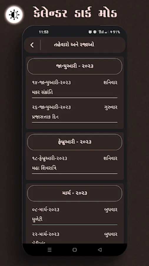આ કેલેન્ડર ની અંદર તમને જાહેર રજા અને તેના વિશે ની માહિતી મળશે, જે રજા હોઈ તેના પર ક્લિક કરો એટલે તેના વિશે માહિતી મળશે.