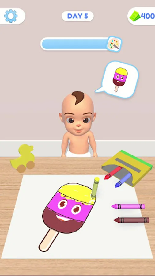 Pamper the kid with feeding. Play with him, tickle him and keep him safe always. Then take him for a walk and make him enjoy the ride. Let's have fun by drawing artwork with him.