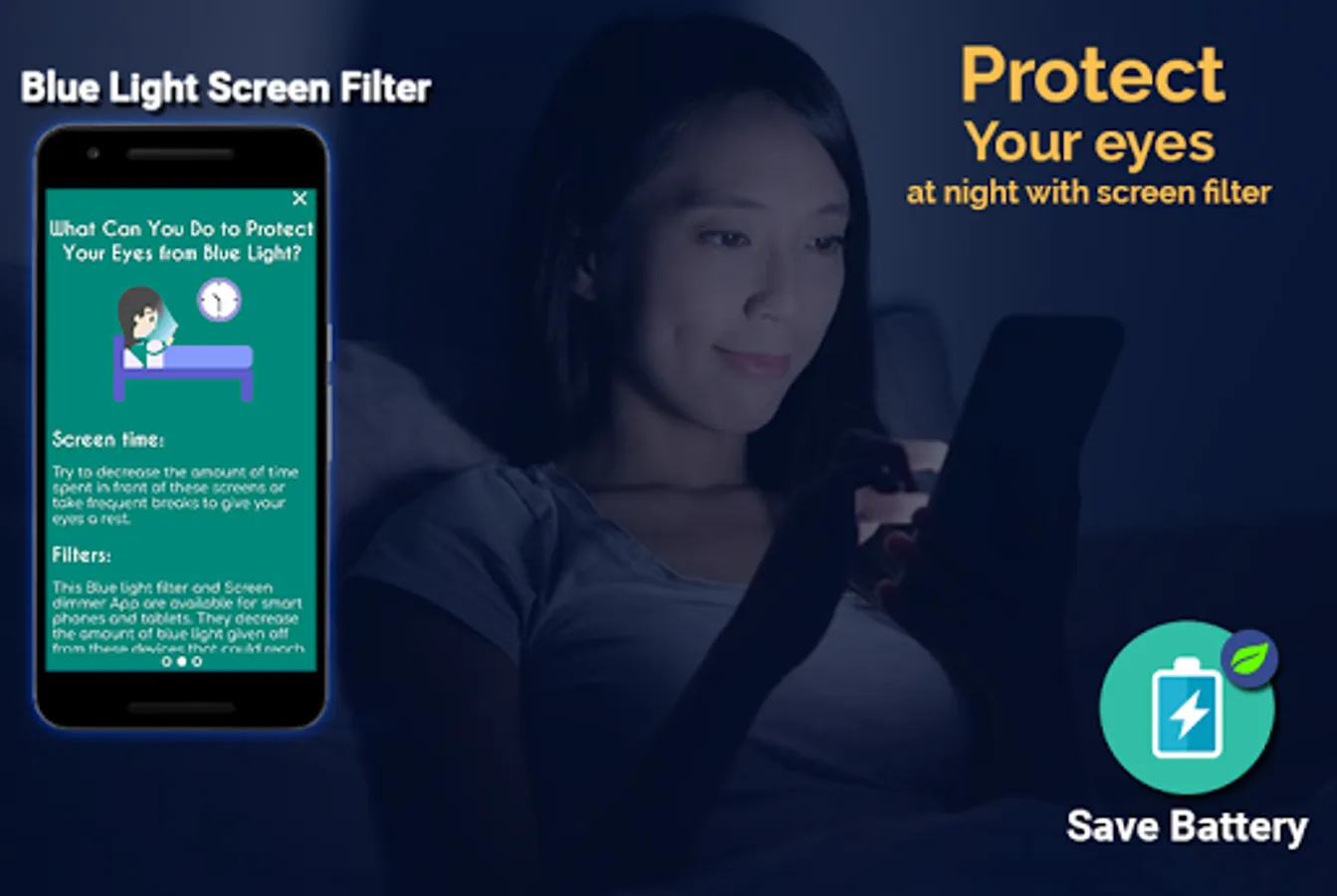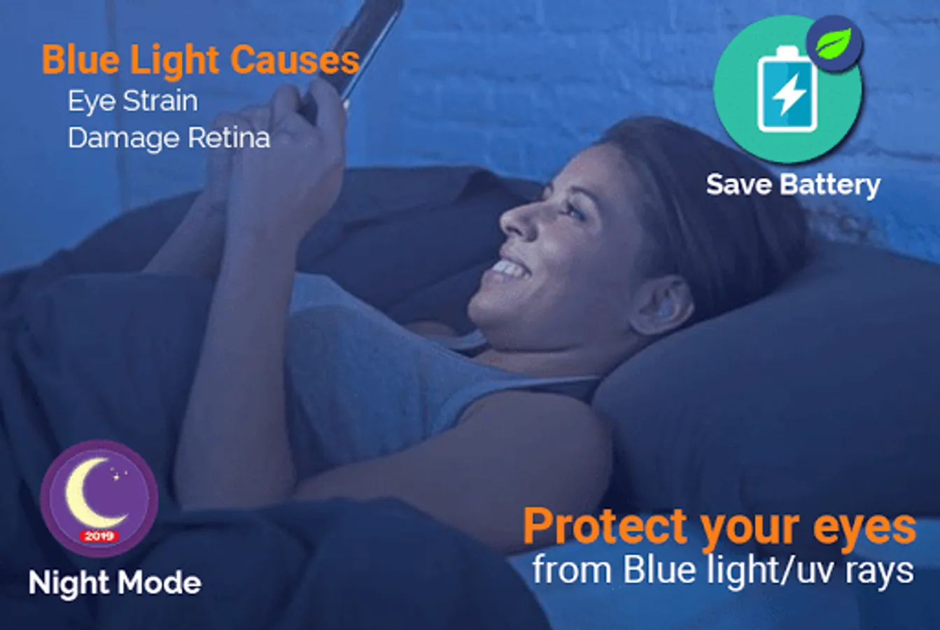 By using blue screen or night screen (Blue light blocker) you can also save battery because at night mode (dark mode) the screen brightness is very decreased so it would not consume too much power and so save battery.